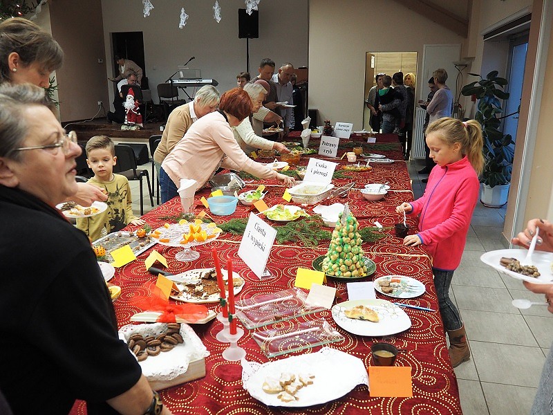 Gratulujemy zwycięzcom i wszystkim wystawiającym potrawy, były naprawdę wyśmienite. Uczestnicy i goście mogli też podziwiać i nabywać liczne świąteczne produkty rękodzielnicze w miłej przedświątecznej atmosferze uczestnicząc w koncercie kolęd i piosenek bożonarodzeniowych w wykonaniu Pani Henryki Bogdanowicz.