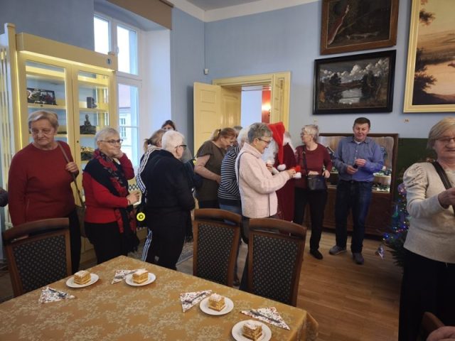 Grupa 20 diabetyków podjechała pod pałac w Trzebiatowie, czekał tam na nas już przewodnik Pani Danuta Koszewska oraz Pani Ewa Banaś nasza przyjaciółka diabetyk z koła PSD w Trzebiatowie. Po zrobieniu pamiątkowego zdjęcia czekała na nas niespodzianka w postaci Mikołaja z prezentami. Aby zabezpieczyć nas w energię organizatorzy rozpoczęli od poczęstunku w postaci ciastka i kawy. Po czym ruszyliśmy na spotkanie z historią pałacu i Trzebiatowa.