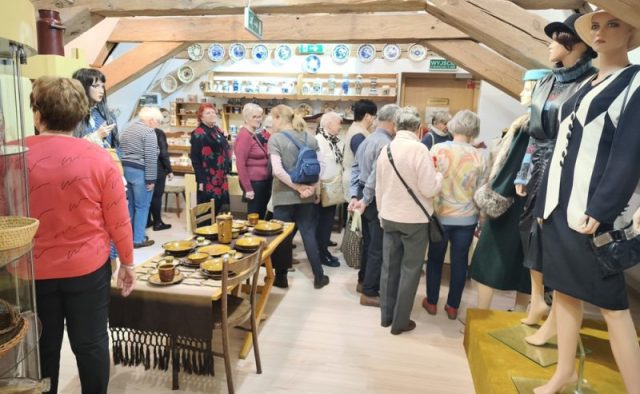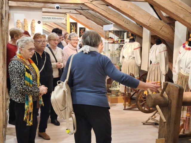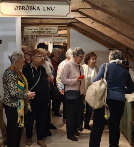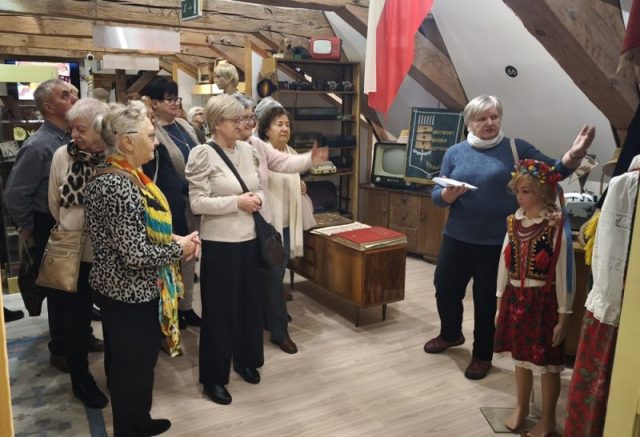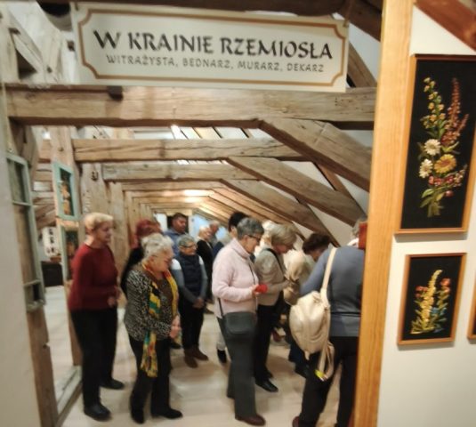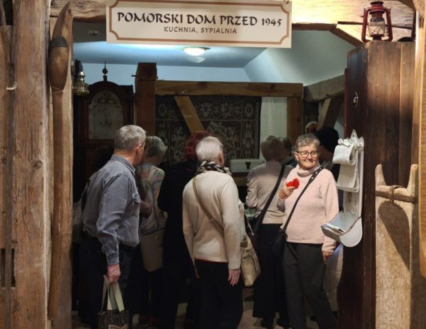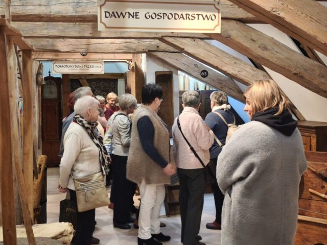Na zaadaptowanym strychu pałacu w Trzebiatowie znajduje się muzeum, w którym prezentowane są różnorodne eksponaty związane z historią miasta i regionu. Wśród zbiorów można zobaczyć dawne narzędzia codziennego użytku, przedmioty rzemieślnicze, pamiątki związane z dawnymi mieszkańcami pałacu oraz elementy wyposażenia wnętrz z różnych epok. Pani Danuta potrafiła sprawić, że odżyło wiele z nich w naszych wspomnieniach w uroczym stylu łącząc opowieść o pałacu jego włodarzach i Trzebiatowie, i jego bogatej historii. Przed naszymi oczyma rysowała pani Danuta świetną opowieść poczynając od pierwszych wzmiankach o osadzie, która pojawiły się już w XII wieku, a prawa miejskie nadano mu w 1277 roku.