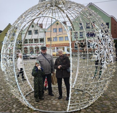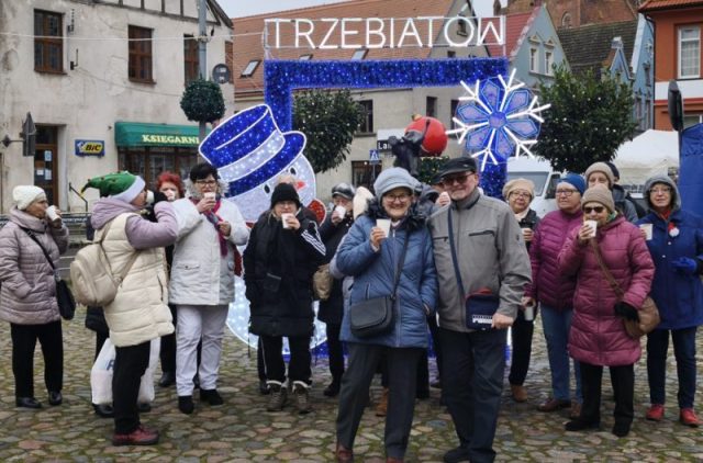 Pani Danuta prowadziła opowieści o tych dziejach prowadząc nas od pałacu, przy murach obronnych, w Sanktuarium NMP, tablicy jednej z trzebiatowskich kamienic, nieopodal Rynku, gdzie znajduje się tajemniczy wizerunek słonia, z którym zostaliśmy zapoznani jak i również Baszty Prochowej z jej legendą o garncu gorącej kaszy która przyczyniła się do odparcia ataku na miasto. Mogliśmy również usłyszeć opowieści o historii poszczególnych zabytkowych kamienic obok których oprowadzała nas Pani Danuta aż doszliśmy do placu, na którym odbywał się festyn Mikołajkowy i tam skończył się nasz spacer po historii Trzebiatowa w towarzystwie przesympatycznej Pani Danuty. Po spożytym posiłku wróciliśmy do Nowogardu, w którym również trwał festyn Mikołajkowy na który co wytrwalsi się udali.