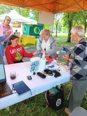 ?⚕️?⚕️ Mieszkańcy mogli skorzystać z pomiaru poziomu glukozy, ciśnienia tętniczego oraz indywidualnych konsultacji dotyczących profilaktyki cukrzycy.