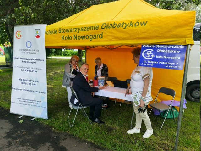 Pomimo wietrznej pogody i przelotnych opadów, nasze stoisko cieszyło się dużym zainteresowaniem. Odbywały się rozmowy na temat zdrowego stylu życia, sposobów zapobiegania cukrzycy oraz wsparcia, jakie oferuje nasze Koło PSD.