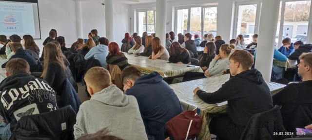 W dniach 26 marca oraz 04 kwietnia 2024 r. PSD koło Nowogard przeprowadziło spotkanie z młodzieżą z Zespołu Szkół nr 1 im. Stanisława Staszica w Nowogardzie. Jest to jedno z zadań edukacyjnych jakie prowadzimy na terenie Gminy Nowogard w śród mieszkańców w ramach oferty realizacji zadania publicznego „Ochrona zdrowia ludzkiego na terenie Gminy Nowogard” w dniu 26 marca uczniowie z sześciu klas w liczbie około 120 osób oraz w dniu 04 kwietnia uczniowie z pięciu klas w liczbie około 100 osób wraz w wychowawcami uczestniczyło w prelekcji „Co powinniśmy wiedzieć o cukrzycy”. Celem prowadzonej edukacji jest dotarcie do młodzieży z informacją o samej cukrzycy, o powikłaniach i zagrożeniach jakie niesie ta choroba. Bywa, że młodzi ludzie mają problem z adaptację w środowisku, krępują się mają opory, aby bez zahamowani funkcjonować. Bywa, że otoczenie nie wie i nie rozumie jednokrotnie potrzeb chorego dziecka na cukrzycą. Staramy się przekazać informację młodym diabetykom ich rówieśnikom jak i również pozostałym uczestnikom spotkań, że „Dzieci z cukrzycą niczym nie różnią się od swoich rówieśników. Mają takie same marzenia, możliwości, plany na przyszłość.