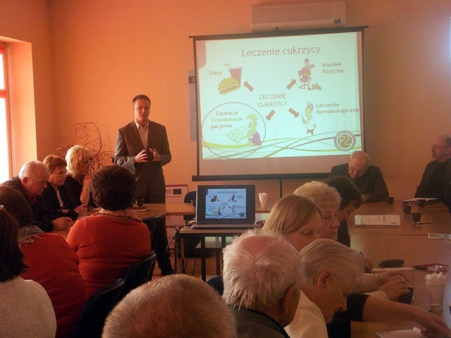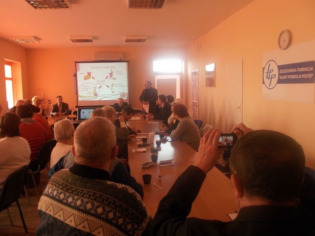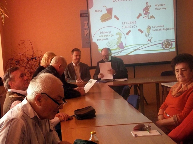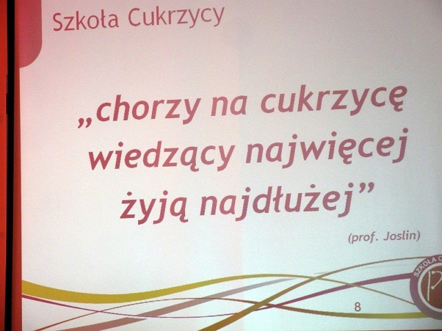 Pomysłodawca i Koordynator Programu „Szkoła Cukrzycy” Federacji „Porozumienie Zielonogórskie” Pan dr Andrzej Paciorkowski omówił idę i cele jakie ma spełnić program realizowany od dwóch lat w skali kraju. Program powstał w wyniku zawiązanej współpracy pomiędzy Federacją „Porozumienie Zielonogórskie” a Polskim Stowarzyszeniem Diabetyków. Zawarta umowa określa zasady współdziałania stron w celu promocji wśród pacjentów i lekarzy kampanii na rzecz zapobiegania cukrzycy i propagowaniu aktywnej postawy wobec tej choroby prowadzonej pod nazwą „Szkoła Cukrzycy” W obecnym roku partnerami programu są również Abbott Diabetes Care oraz Optium Xido. Pan dr Andrzej Paciorkowski zapoznał również uczestników z dotychczasową historią i zasięgiem programu. W województwie Zachodniopomorskim do dnia dzisiejszego jest to dopiero druga „Szkoła Cukrzycy” .