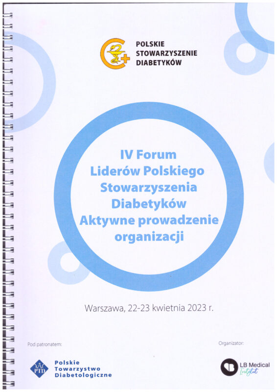 W dniach 22-23 kwietnia 2023 r. w Warszawie odbyło się IV Forum Liderów Polskiego Stowarzyszenia Diabetyków. Była to czwarta edycja wydarzenia pod patronatem Polskiego Towarzystwa Diabetologicznego, w której udział wzięło ponad 200 liderów Oddziałów i Kół PSD z całej Polski. Uczestnicy mieli okazję zdobywać i pogłębiać swoją wiedzę pod okiem wybitnych ekspertów w tematach obejmujących zagadnienia: