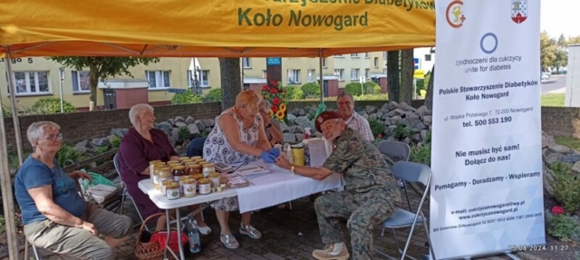 15-08-2024 r. nowogardzcy diabetycy przeprowadzili badania w kierunku cukrzycy poszerzone o badania poziomów cholesterolu, trójglicerydów oraz poziomów ciśnienia tętniczego wśród uczestników odpustu parafialnego. Badania przesiewowe na odpuście w parafii Rzymsko katolickiej pw. Wniebowzięcia NMP prowadzimy od 2013 r., czyli było to 11 cykliczne nasze działanie. Osoby zainteresowane otrzymały materiały edukacyjne w kierunku cukrzycy.