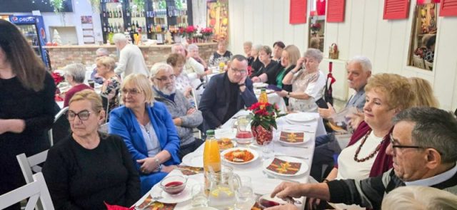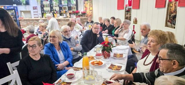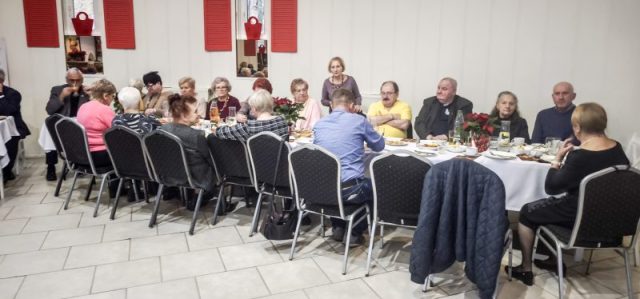 Spotkanie otworzył Eugeniusz Tworek, po czym głos zabrali wybrani goście honorowi, wyrażając życzenia i słowa wsparcia dla wszystkich obecnych. Ks. kanonik Grzegorz Gruszka rozpoczął wspólną modlitwą część opłatkową, tworząc wyjątkową, uroczystą atmosferę. Po tradycyjnym łamaniu się opłatkiem i składaniu sobie życzeń – szczególnie zdrowia i pomyślności – wszyscy zasiedli do wieczerzy przygotowanej przez restaurację Okrąglak.