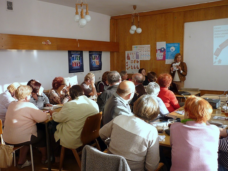 - Wykład konsultanta Dietetycznego Pani Hanny Głowackiej z firmy OLEOFARM Sp. z o.o. o znaczeniu oleju lnianego LenVitol w diecie ze szczególnym uwzględnieniem osób z cukrzycą.