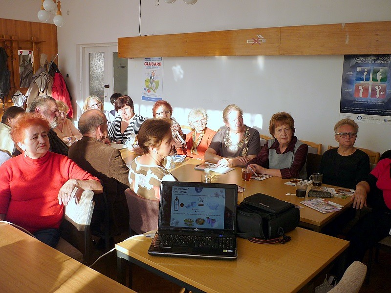- Wystąpienie Przedstawiciela ds. Promocji Tarchomińskich Zakładów Farmaceutycznych „Polfa” Pni Barbary Siarneckiej, w którym zaprezentowała produkty firmy „Polfa” dedykowane diabetykom.
