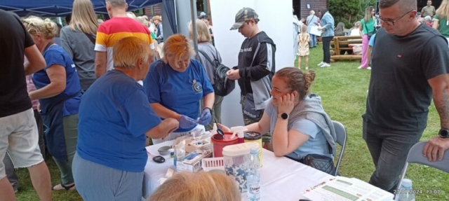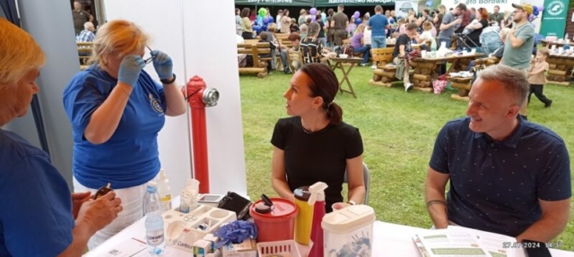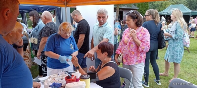 Na spotkaniu z Borówką Czernicą i 100 – letnią jubilatką, organizacją Lasy Państwowe, nie zabrakło również Stowarzyszenia Diabetyków. Przedstawiciele oddziału w Nowogardzie zadbali o poziom naszej cukrowej wiedzy. Przy takich bowiem ilościach pierożków, naleśników, gofrów, ciast, przystawek z jagodowym musem nawet nasza mała, choć wielkim zdrowiem Borówka Czernica nie dawała rady utrzymać nas w normie. Po raz pierwszy zawitała do nas również firma zajmująca się kosmetykami posiadającymi w swoim składzie wyciągi z borówki. Mamy nadzieję, że wiedza w zakresie zastosowania leśnych roślin w kosmetologii i farmaceutyce będzie z roku na rok coraz szersza.